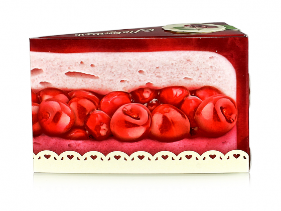 Пленительный аромат летней сочной вишни с нотками кислинок подарит яркие эмоции и праздничное настроение даже в серый или холодный день, окутывая дымкой невесомого аромата природы и чистоты. Оригинальная упаковка в виде кусочка праздничного торта придется по душе всем и каждому и станет прекрасным подарком по поводу и без.