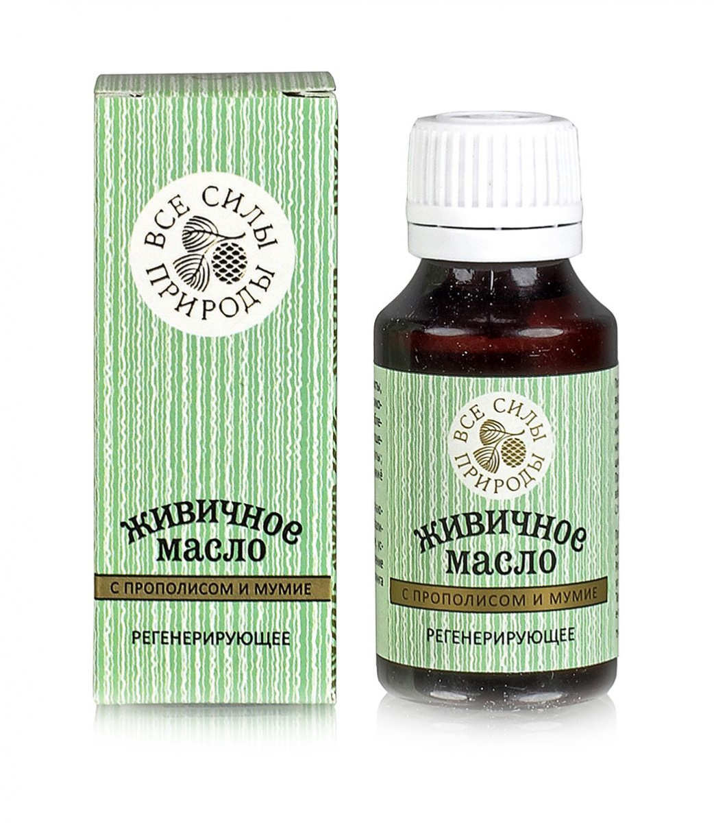 В состав масла «Живичное. С прополисом и мумие» входит прополис. Прополис подавляет активность и убивает бактерии и вирусы, замедляет рост некоторых из них. Кроме того, прополис обезвреживает яды, которые выделяют распадающиеся клетки, ускоряет процессы регенерации и заживления.