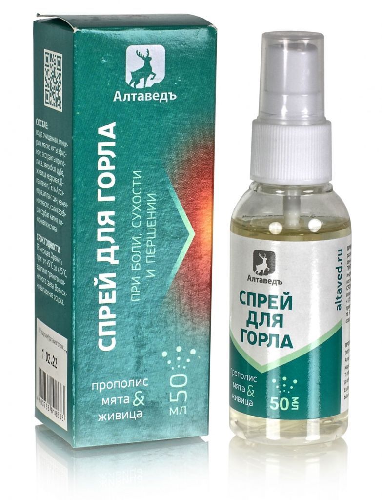 Бесспиртовые натуральные спреи на основе кедровой живицы стали очень популярными: они не содержат алкоголя, безопасны и удобны в применении, могут применяться в раннем детском возрасте. Спрей для горла с прополисом и кедровой живицей производства компании Алтайведъ создан на основе природных компонентов широкого спектра целебного воздействия: он обладает мощным успокаивающим, анальгетическим, заживляющим и антисептическим свойством, направленным против самых распространенных возбудителей бактериальных и вирусных инфекций.