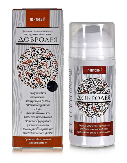 Крем Добродея пантовый в мицеллярной форме – передовое направление в космецевтике. Крем идеально подходит для восстановления естественной структуры кожи, придаёт коже хороший эстетический вид и одновременно защищает кожу от всех видов светового излучения, предотвращает старение клеток кожи и сухость, образование пигментных пятен, эритем.