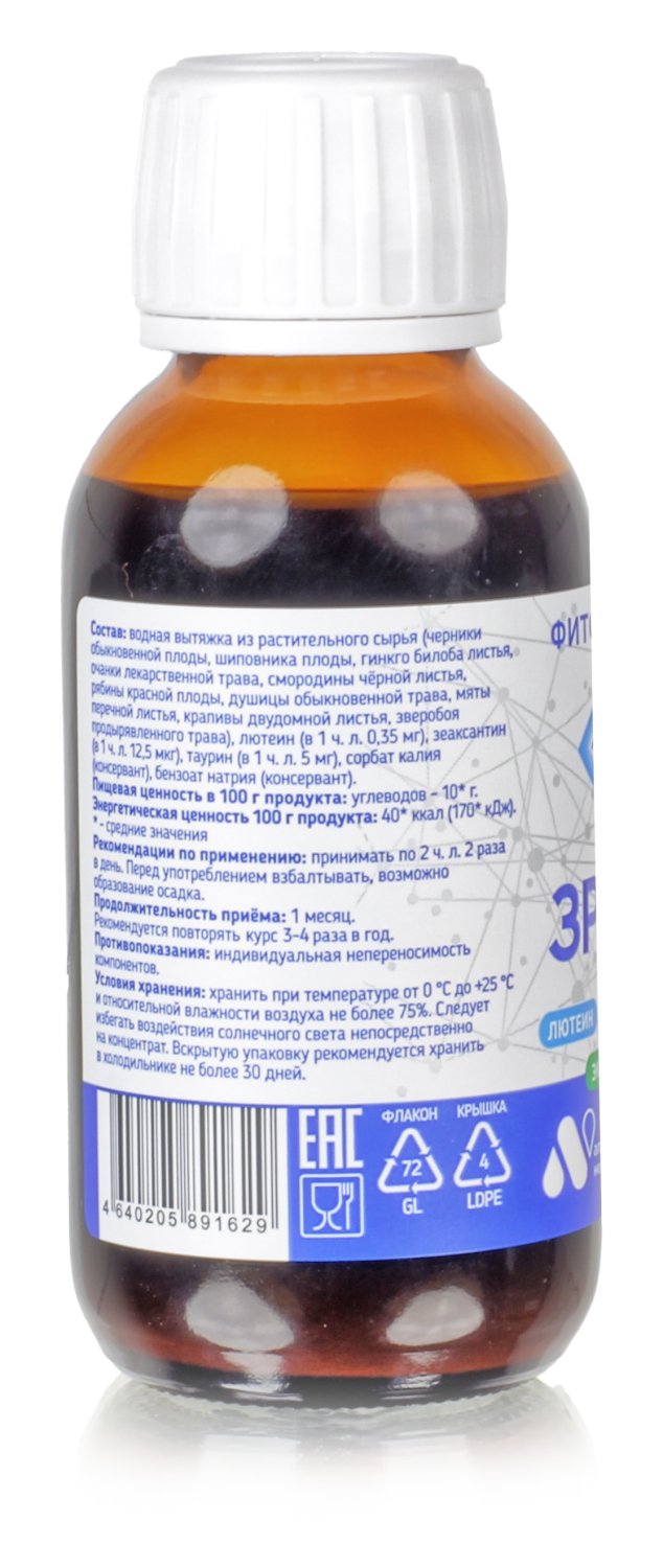 Витамины для глаз Фито концентрат ЗРЕНИЕ 100 мл лютеин, зеаксантин, таурин защита от гаджетов, восстановление остроты зрения
