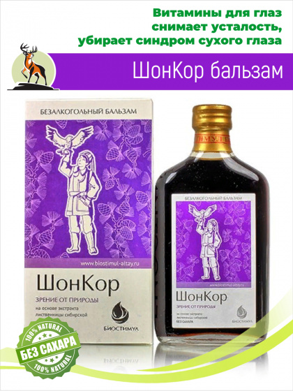 «ШонКор» — безалкогольный растительный бальзам на фруктозе, предназначенный для нормализации зрения.