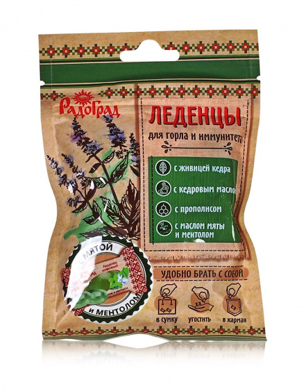 Живичные леденцы «Радоград» с мятой и ментолом помогут справиться с первыми признаками простуды в весенне-осенний сезон или при чрезмерном охлаждении под кондиционером летом. Леденцы незаменимы в дороге при укачивании в любом виде транспорта. Также хорошо леденцы снимут стресс при отказе от курения.