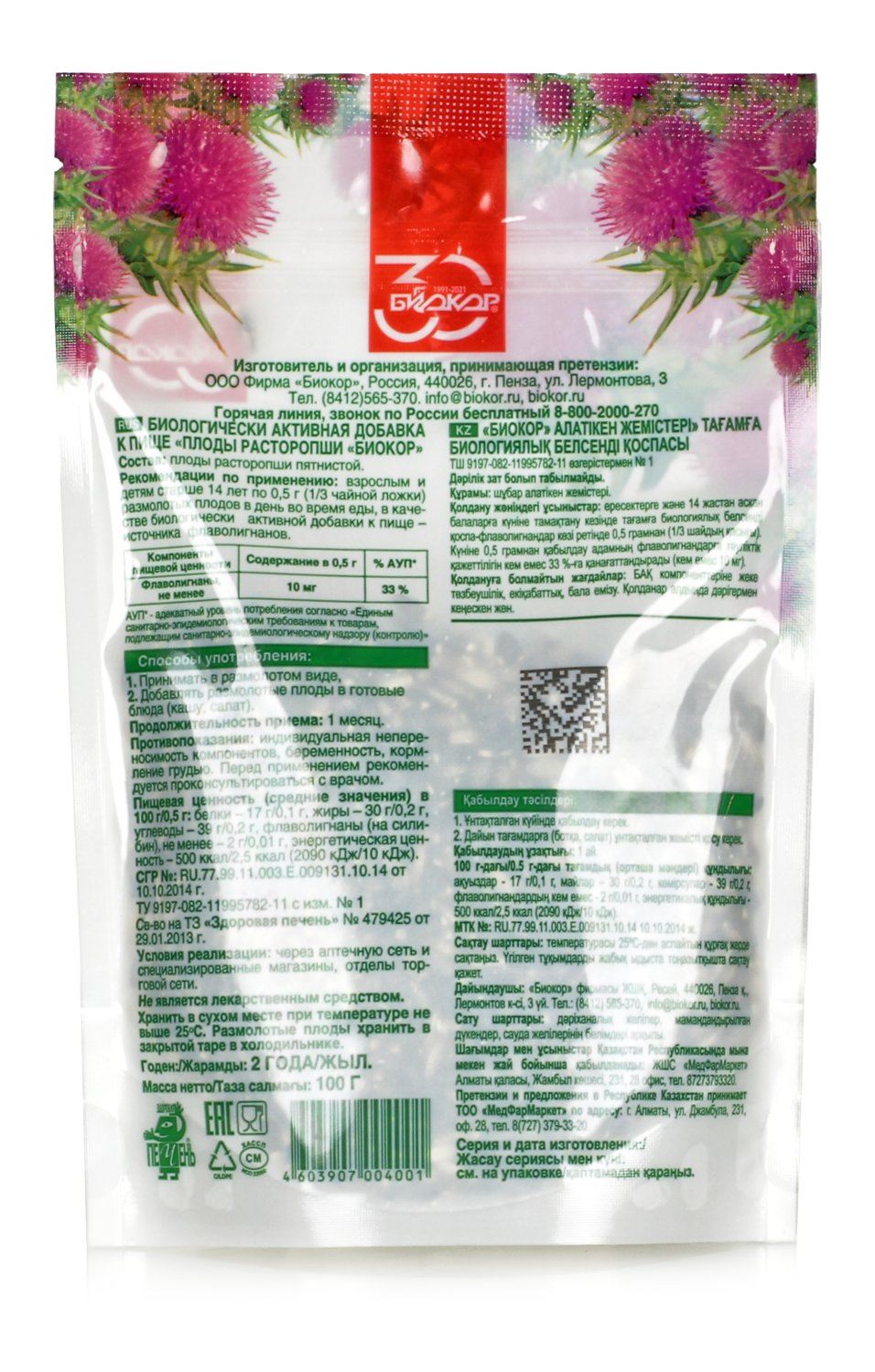 Естественное очищение и детокс. Расторопша мягко способствует выводу токсинов и шлаков, помогая очистить кишечник и весь организм. Подарите себе чувство внутренней чистоты и лёгкости!