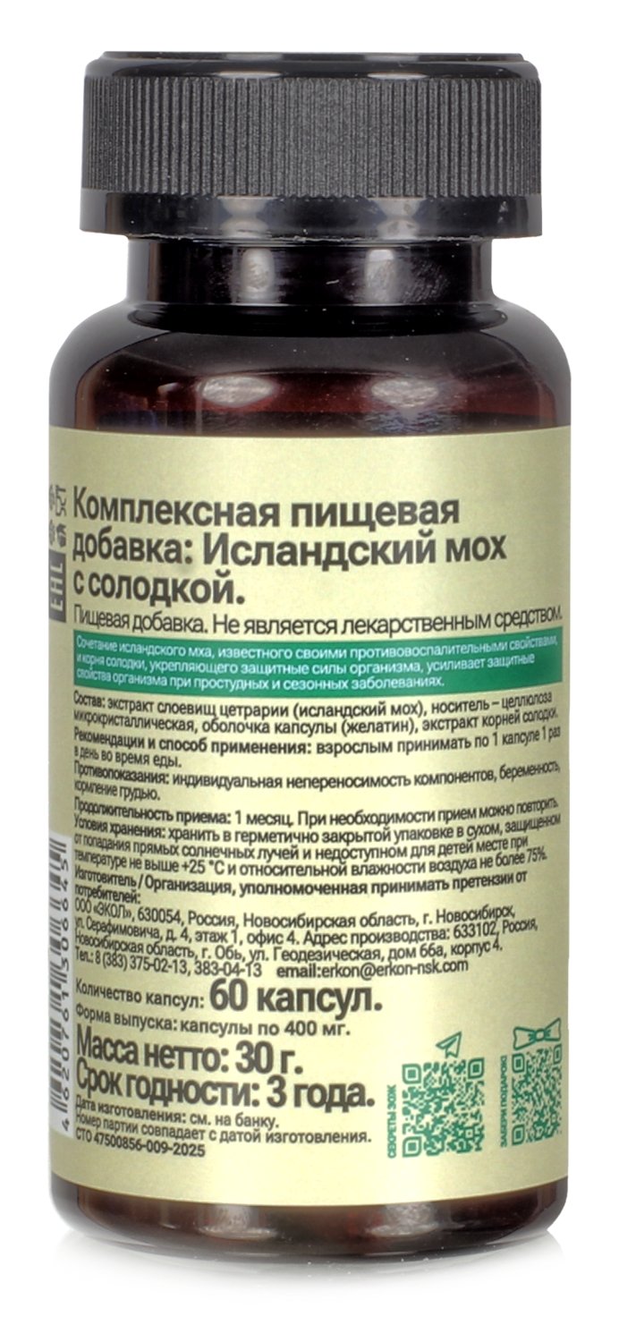 Исландский мох капсулы от кашля с солодкой при гриппе, бронхите для легких