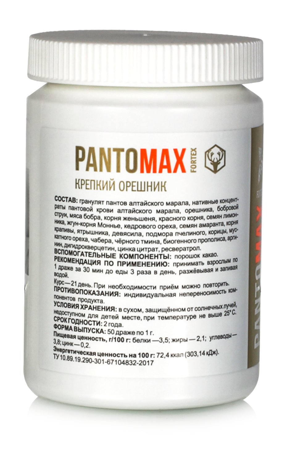 Усиленная формула Пантомакс для мужчин пантовые орешки PantoMax Крепкий орешник в капсулах, 50 шт