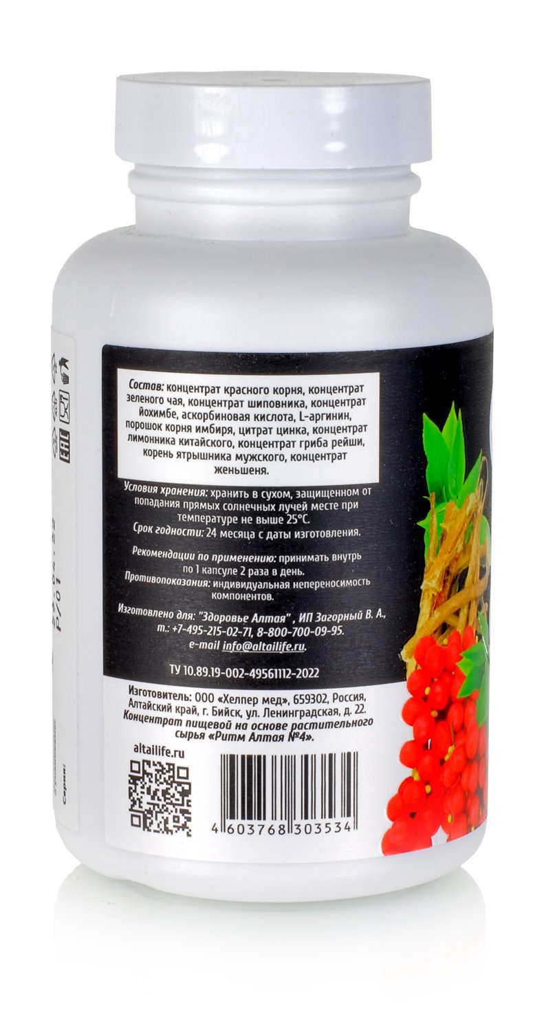 Мужские витамины для энергии, тонуса, потенции Ритм Алтая Цинк, красный корень, рейши, женьшень для мужчин от простатита