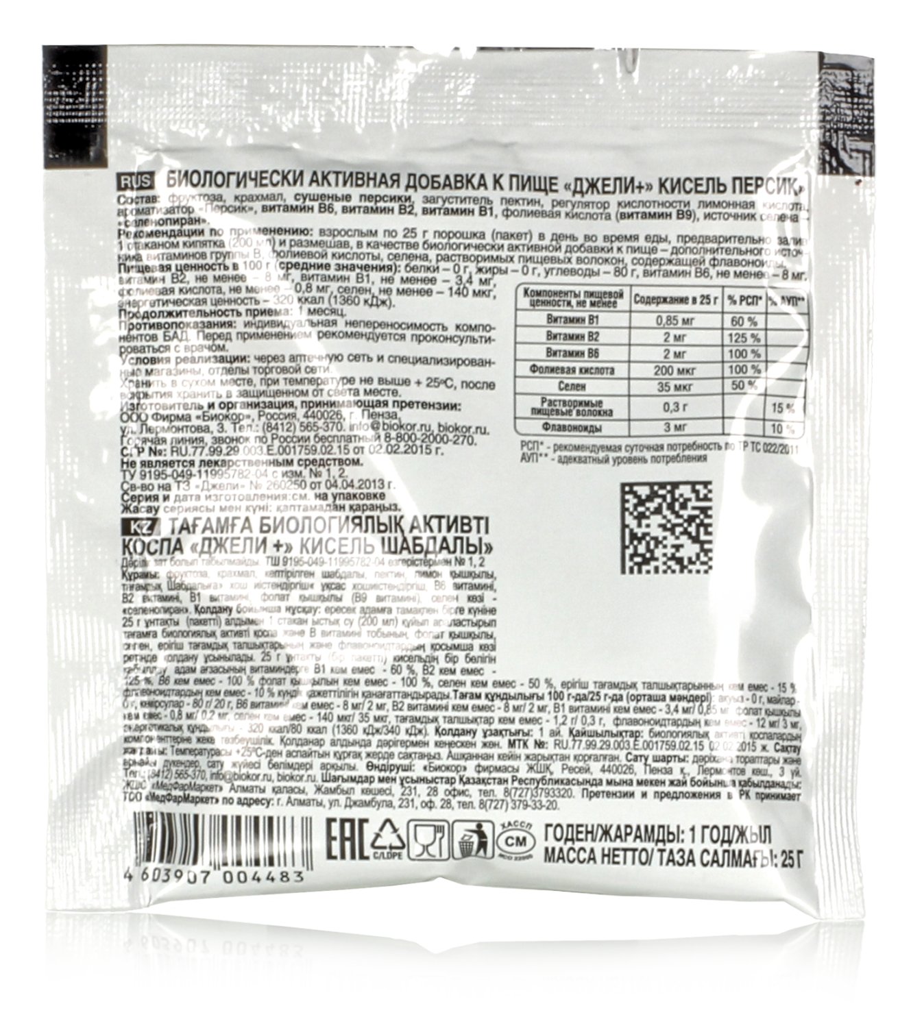 Кисель Персик содержит витамины и селен 25 г