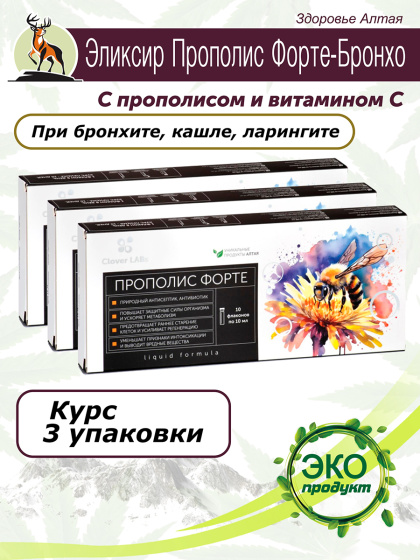 Комплект Эликсир Прополис Форте Бронхо с прополисом и витамином С, 30шт по 10мл