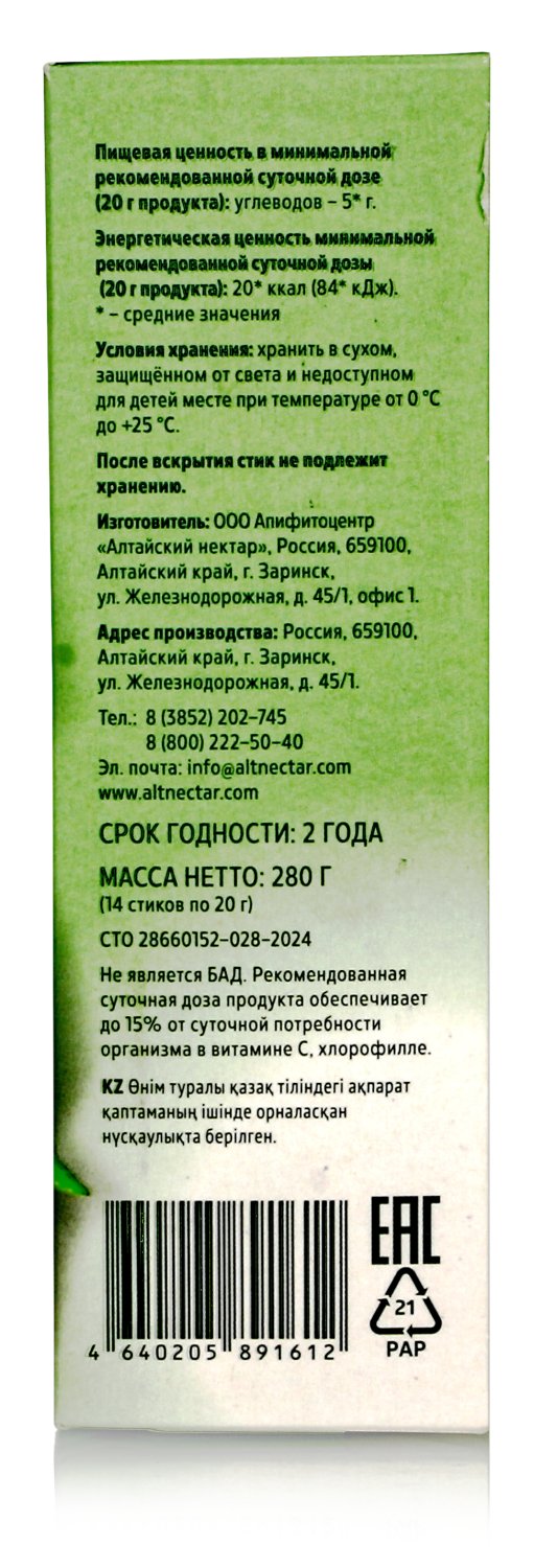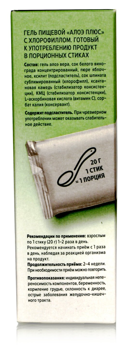 Гель пищевой с хлорофиллом АЛОЭ ПЛЮС 14 стик по 20 гр