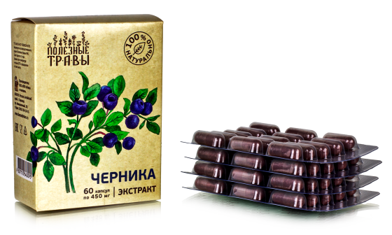 Черника экстракт Полезные травы. 60 капсул по 450мг