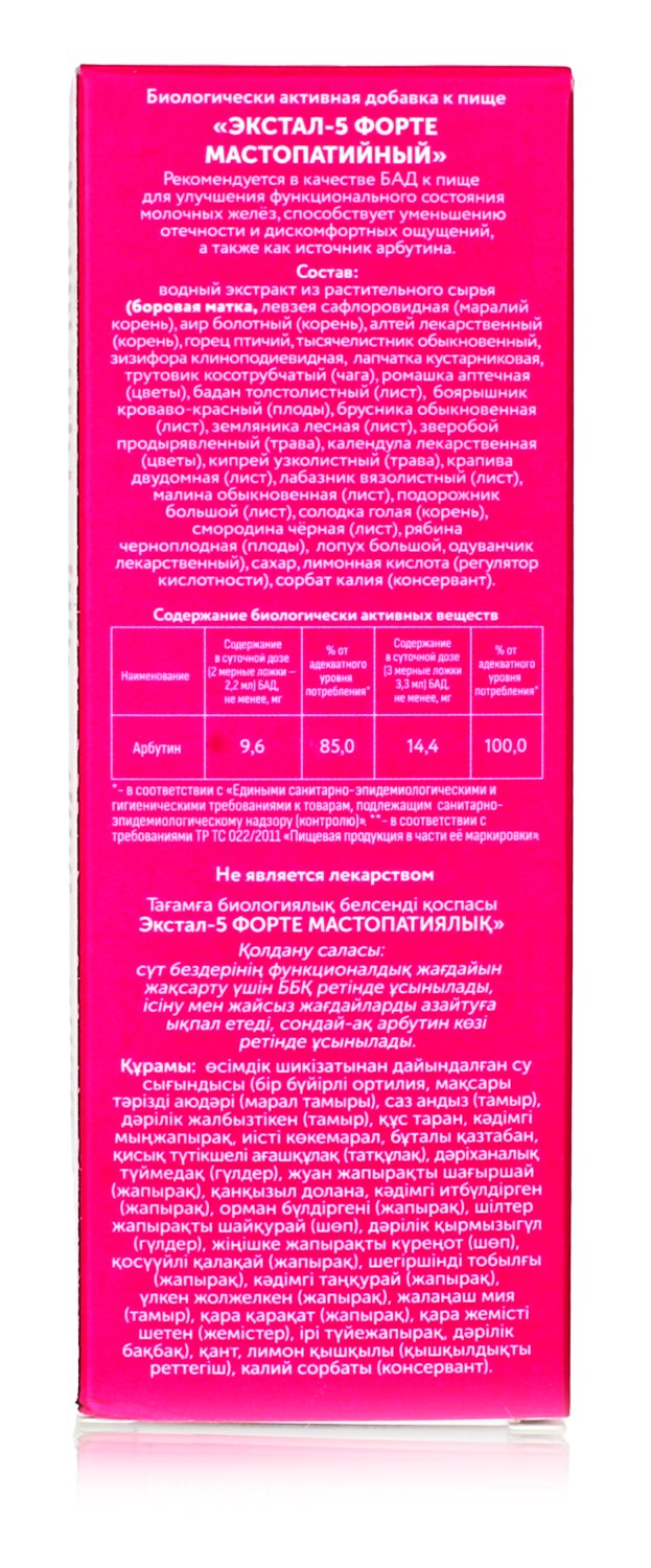 Сироп Мастопатийный Экстал форте 5, 100мл / мастопатия / уплотнения в молочной железе