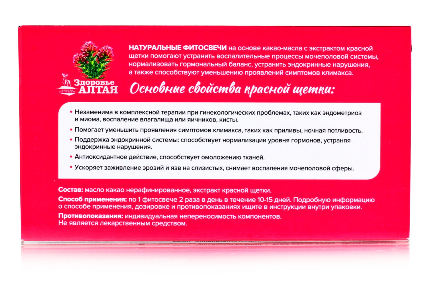 Натуральные фитосвечи с экстрактом красной щетки – многофункциональное средство для женского здоровья. Применяют в комплексной терапии при проблемах в гинекологии и мочеполовой сфере.