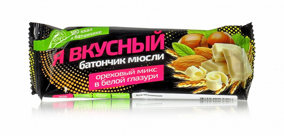 Батончик мюсли "Я вкусный". Ореховый микс в белой глазури 25гр.
