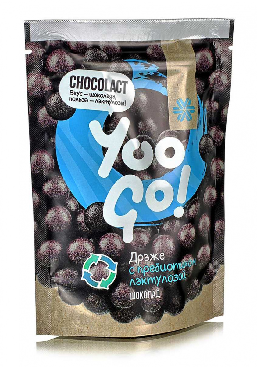 Шоколадное драже Yoo Go содержит пребиотик лактулозу, который бережно заботится о микрофлоре кишечника и способствует нормализации пищеварения.